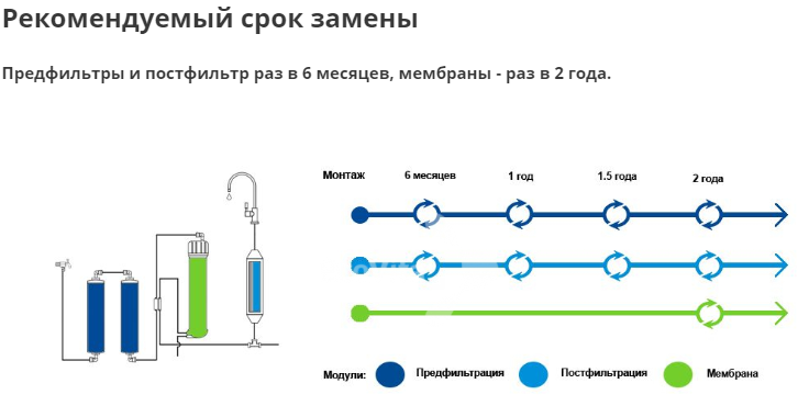 Питьевая система обратного осмоса поставляется в сборе и комплектуется:
