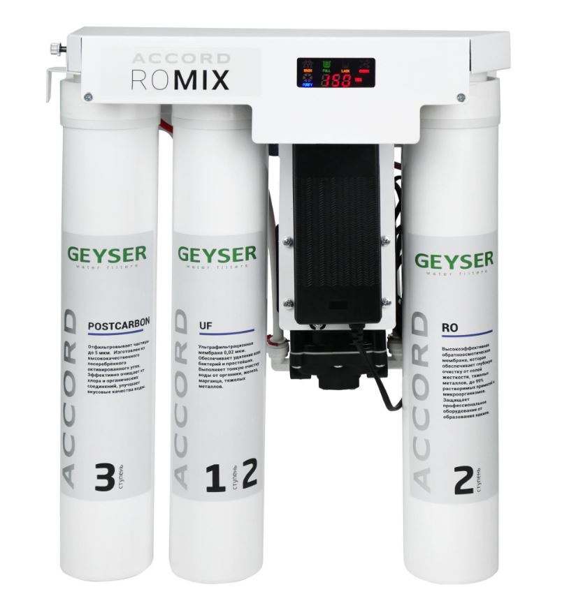 Фильтр Гейзер Accord RO Mix предназначен для получения воды высокой степени очистки и приготовления напитков и гастрономических блюд.