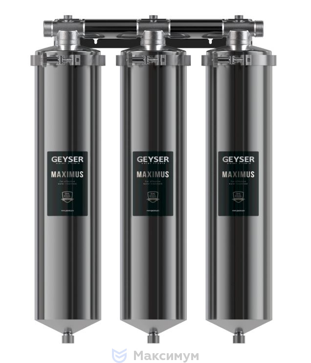 Тройной магистральный фильтр Гейзер Максимус включает 3 колбы 20 ВВ. Рекомендуем использовать фирменные фильтрующие модули компании Гейзер, выбирая их в зависимости от задач водоочистки. ПОДХОДЯТ КАРТРИДЖИ СТАНДАРТА 20ВВ ЛЮБЫХ ПРОИЗВОДИТЕЛЕЙ.