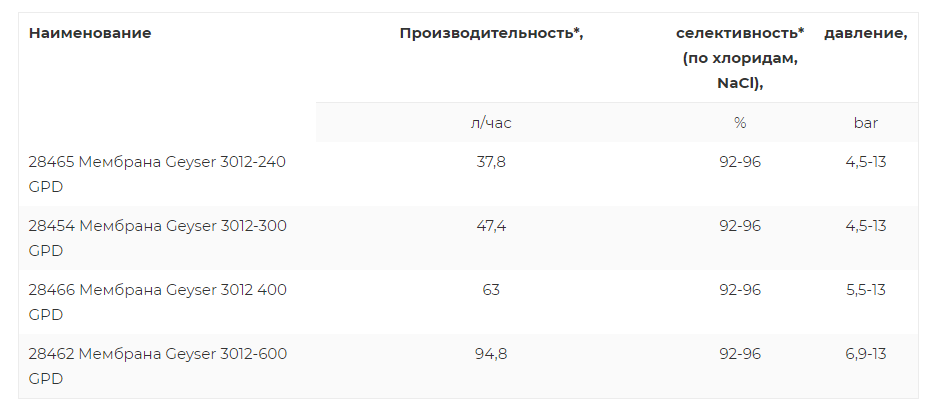Мембрана обратного осмоса Гейзер 3012-240 GPD предназначена для небольших бытовых и коммерческих систем очистки воды и систем использующихся в больницах, школах и лабораториях.В зависимости от загрязненности воды мембрана может использоваться для очистки воды из под крана, скважины, колодца.
