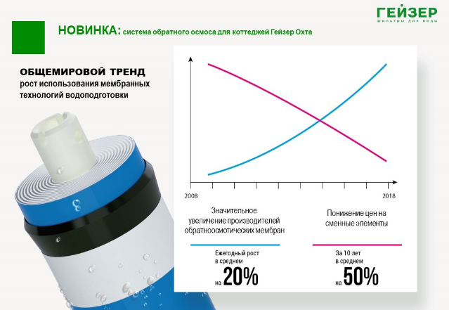• 2 мембраны обратного осмоса с увеличенным ресурсом 3012 400 GPD