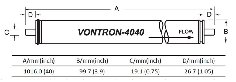 В установках обратного осмоса с размерами мембран в соответствии с чертежом. В одном корпусе может быть установлено несколько мембран последовательно (1, 2, 3 и более).